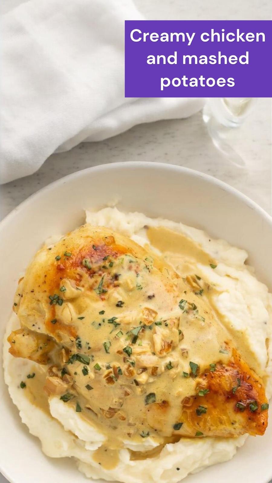 صدر الدجاج بالكريمه والفطر مع البطاط المهروس